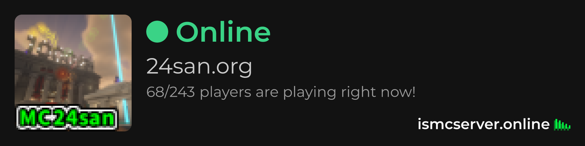 Dark theme: https://ismcserver.online/24san.org/widget?dark=true
