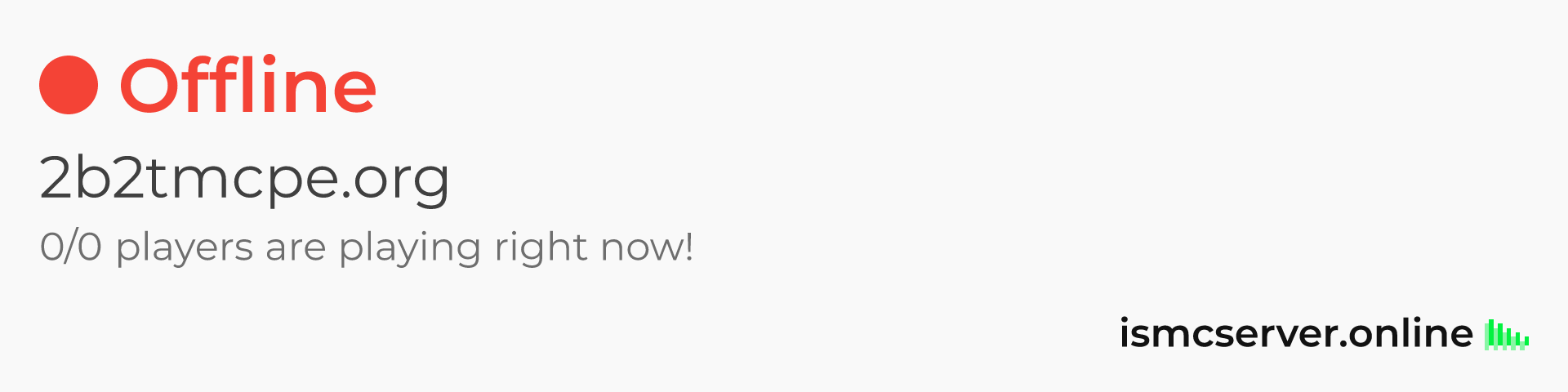 Dark theme: https://ismcserver.online/2b2tmcpe.org/widget?dark=true