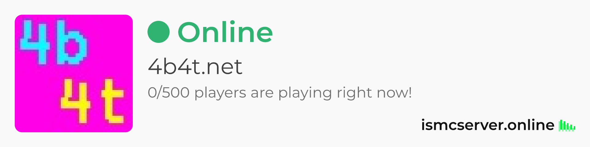 Dark theme: https://ismcserver.online/4b4t.net/widget?dark=true