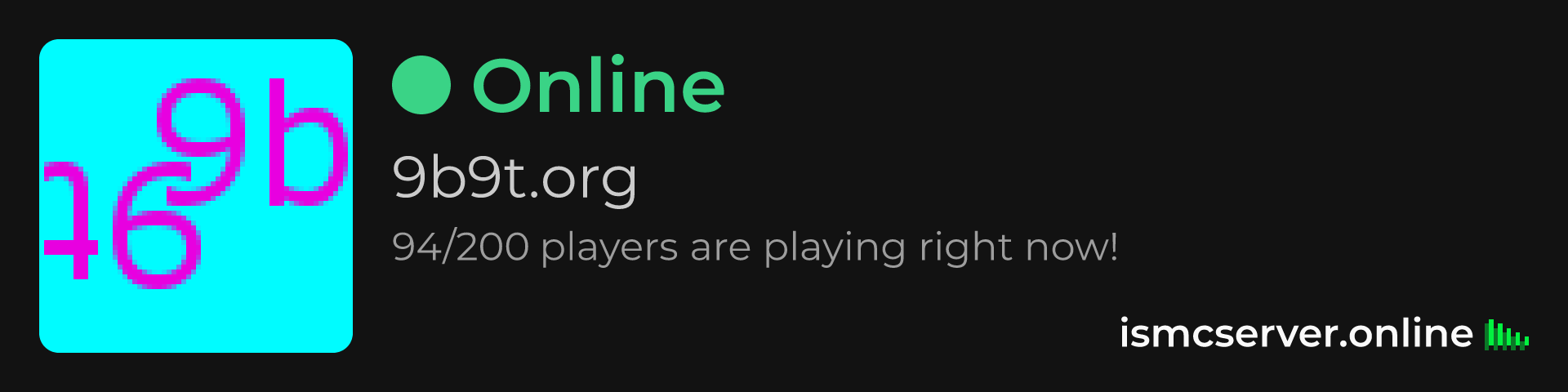 Dark Rounded image: https://ismcserver.online/9b9t.org/widget?dark&rounded