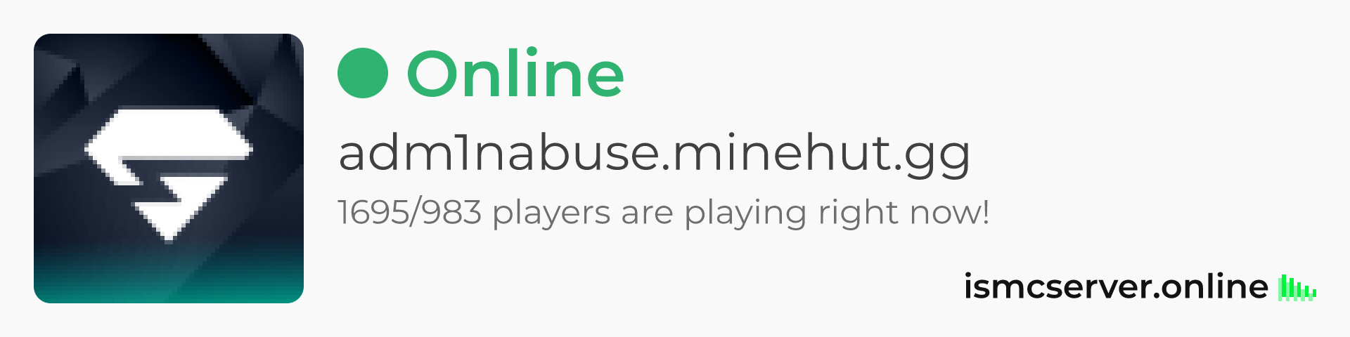 Dark theme: https://ismcserver.online/adm1nabuse.minehut.gg/widget?dark=true