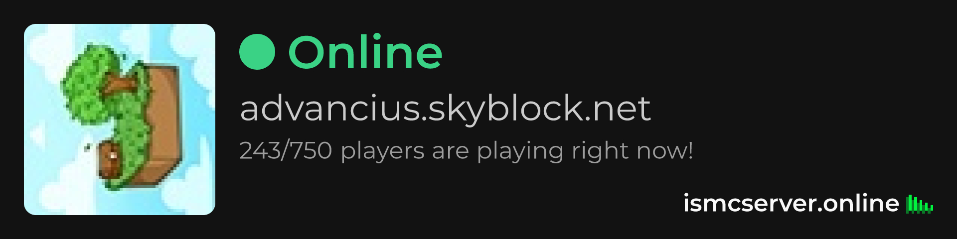 Dark Rounded image: https://ismcserver.online/advancius.skyblock.net/widget?dark&rounded