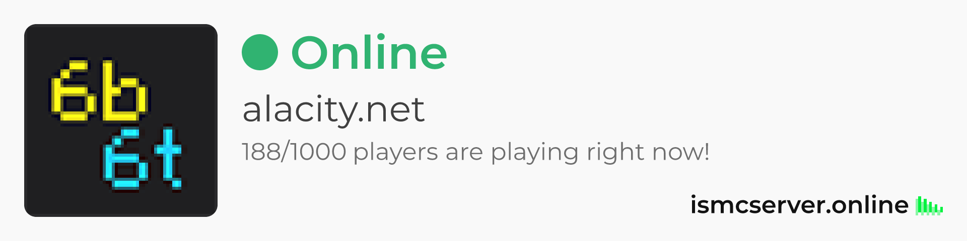 Dark Rounded image: https://ismcserver.online/alacity.net/widget?dark&rounded