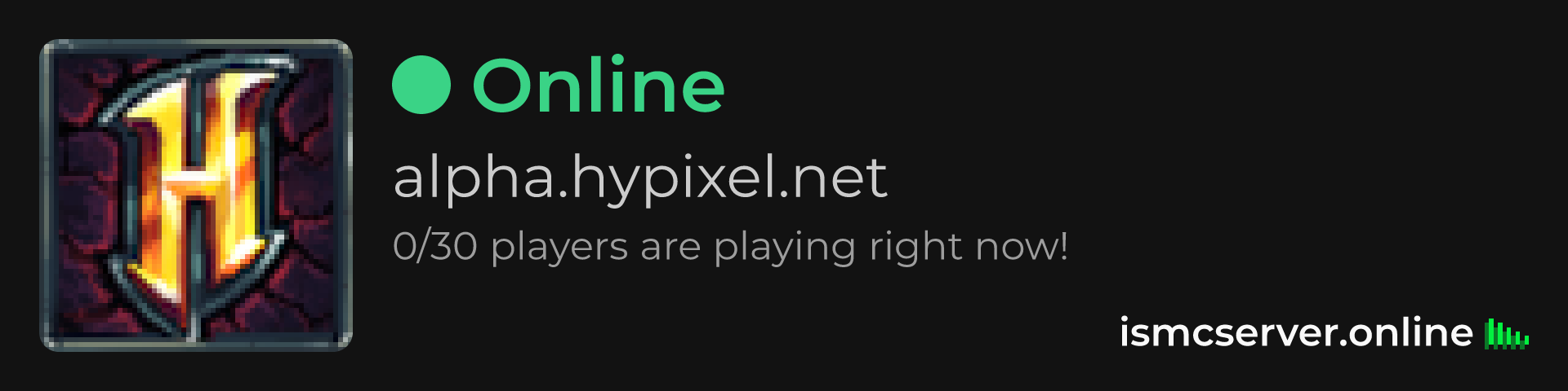 Dark theme: https://ismcserver.online/alpha.hypixel.net/widget?dark=true