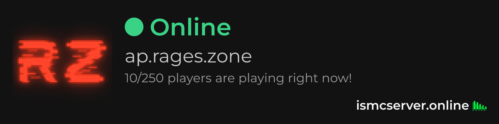 Dark Rounded image: https://ismcserver.online/ap.rages.zone/widget?dark&rounded