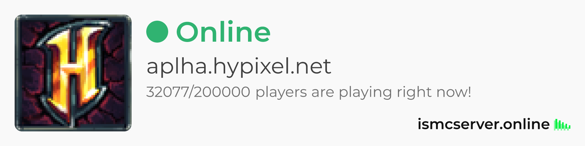 Dark theme: https://ismcserver.online/aplha.hypixel.net/widget?dark=true