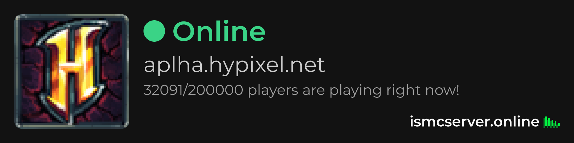 Dark Rounded image: https://ismcserver.online/aplha.hypixel.net/widget?dark&rounded