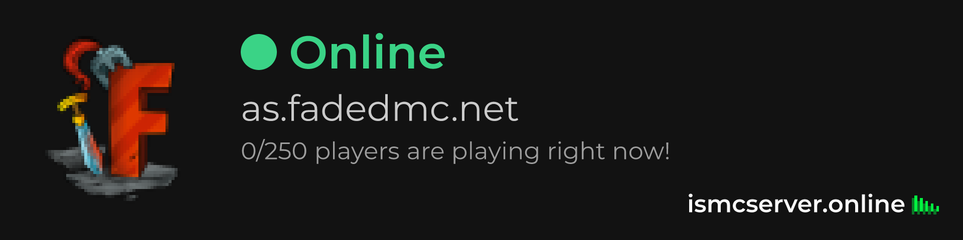Dark Rounded image: https://ismcserver.online/as.fadedmc.net/widget?dark&rounded