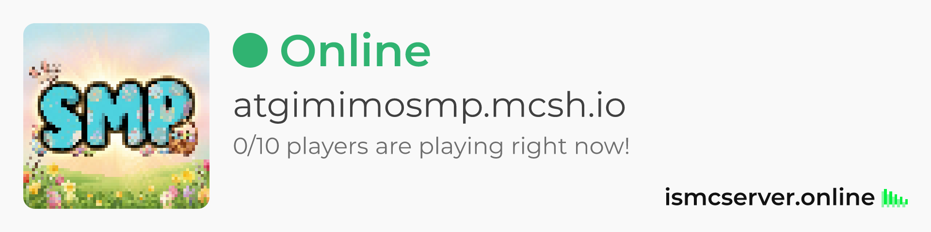 Dark theme: https://ismcserver.online/atgimimosmp.mcsh.io/widget?dark=true
