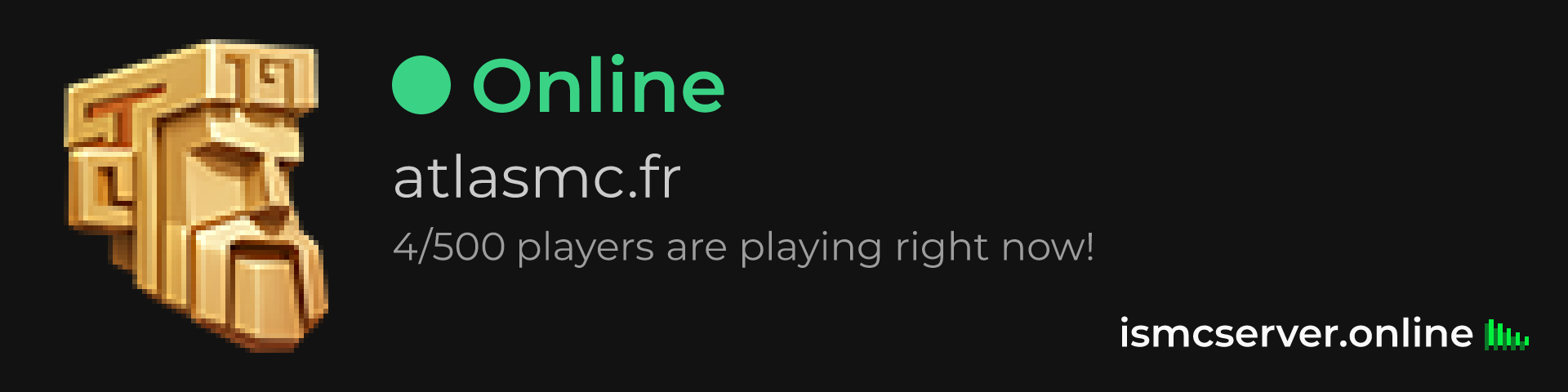 Dark Rounded image: https://ismcserver.online/atlasmc.fr/widget?dark&rounded