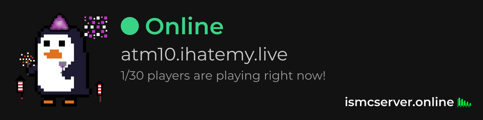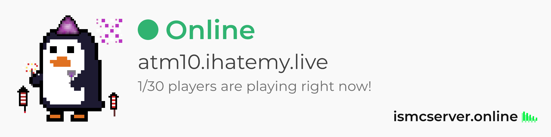 Dark theme: https://ismcserver.online/atm10.ihatemy.live/widget?dark=true