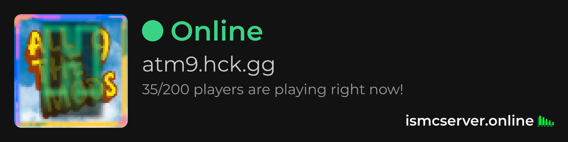 Dark Rounded image: https://ismcserver.online/atm9.hck.gg/widget?dark&rounded