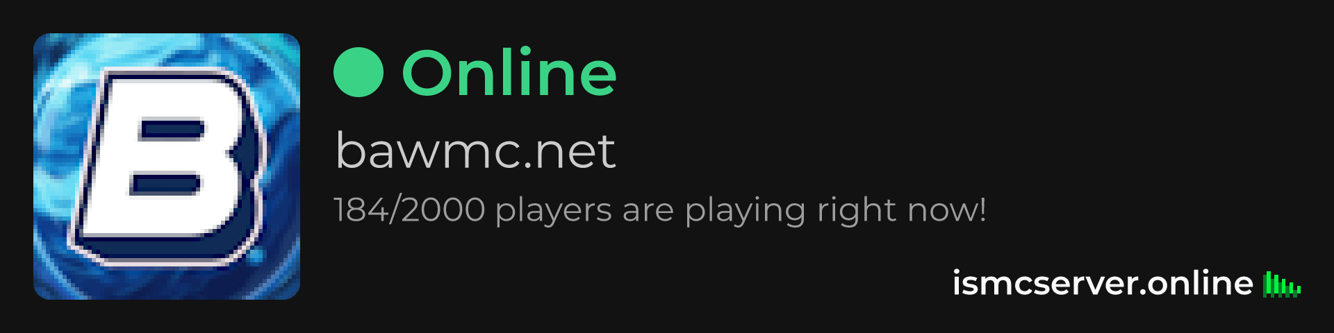 Dark Rounded image: https://ismcserver.online/bawmc.net/widget?dark&rounded