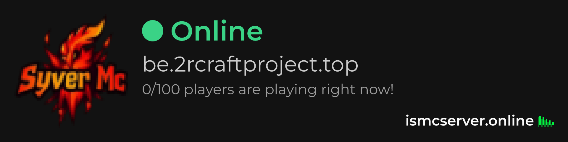 Dark Rounded image: https://ismcserver.online/be.2rcraftproject.top/widget?dark&rounded