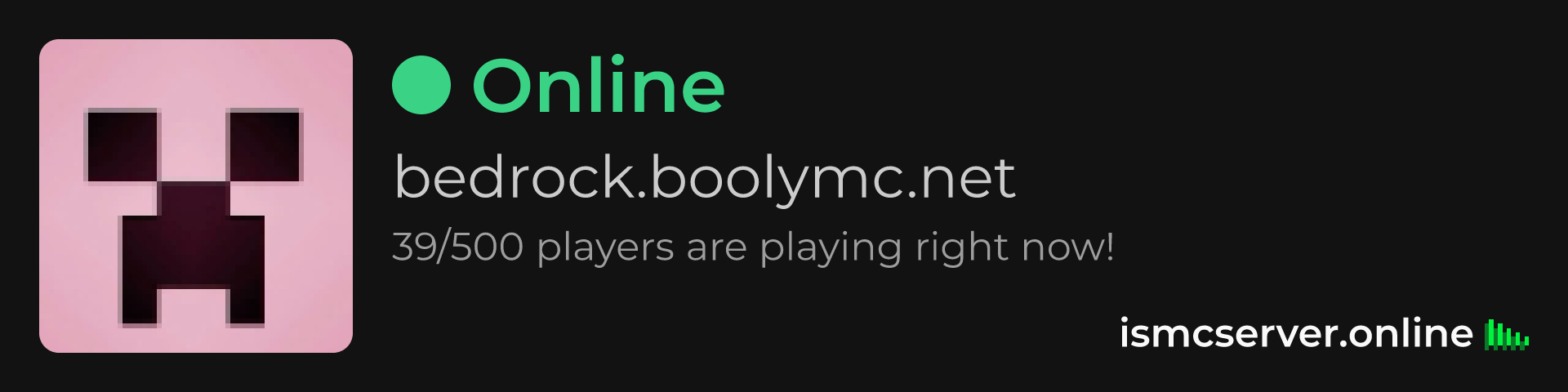 Dark Rounded image: https://ismcserver.online/bedrock.boolymc.net/widget?dark&rounded