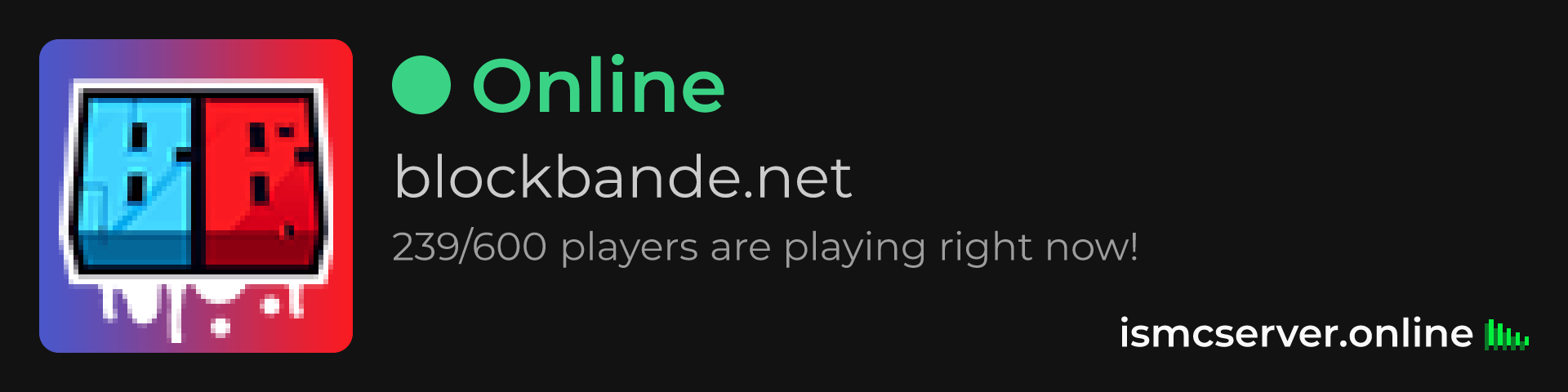 Dark Rounded image: https://ismcserver.online/blockbande.net/widget?dark&rounded