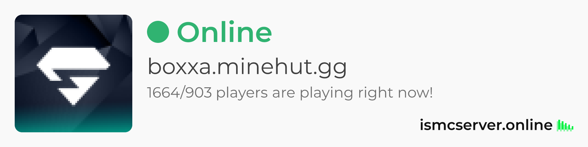 Dark theme: https://ismcserver.online/boxxa.minehut.gg/widget?dark=true