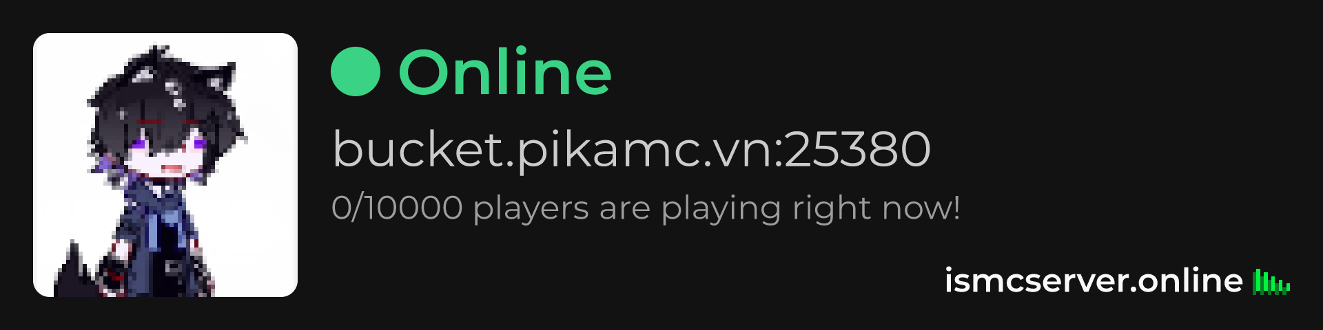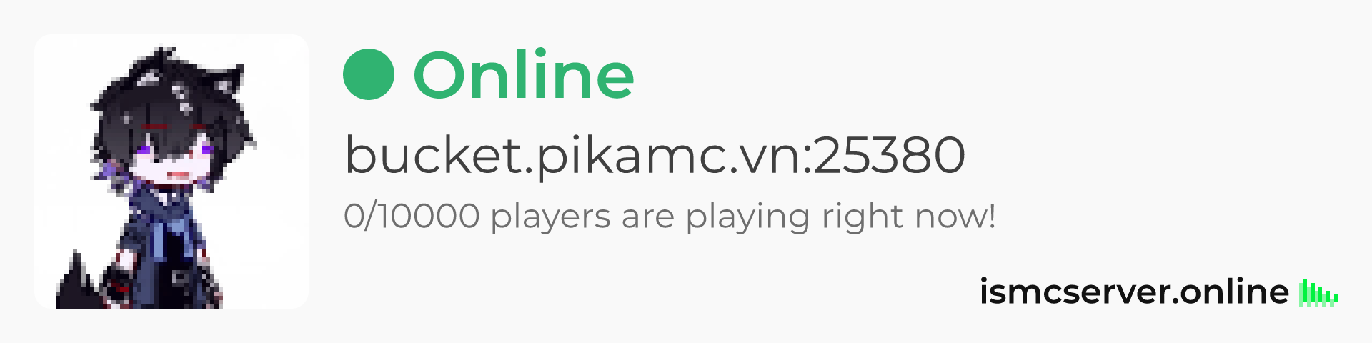 Dark theme: https://ismcserver.online/bucket.pikamc.vn:25380/widget?dark=true