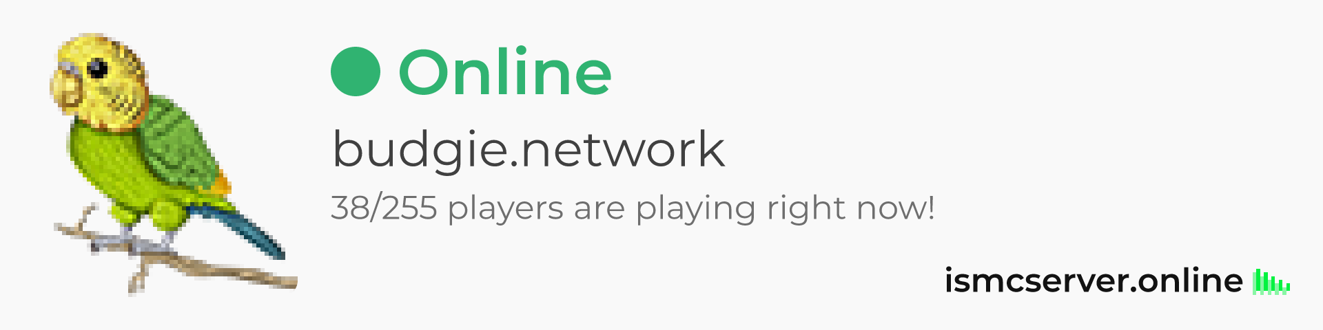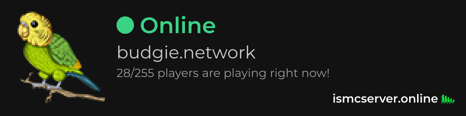 Dark Rounded image: https://ismcserver.online/budgie.network/widget?dark&rounded