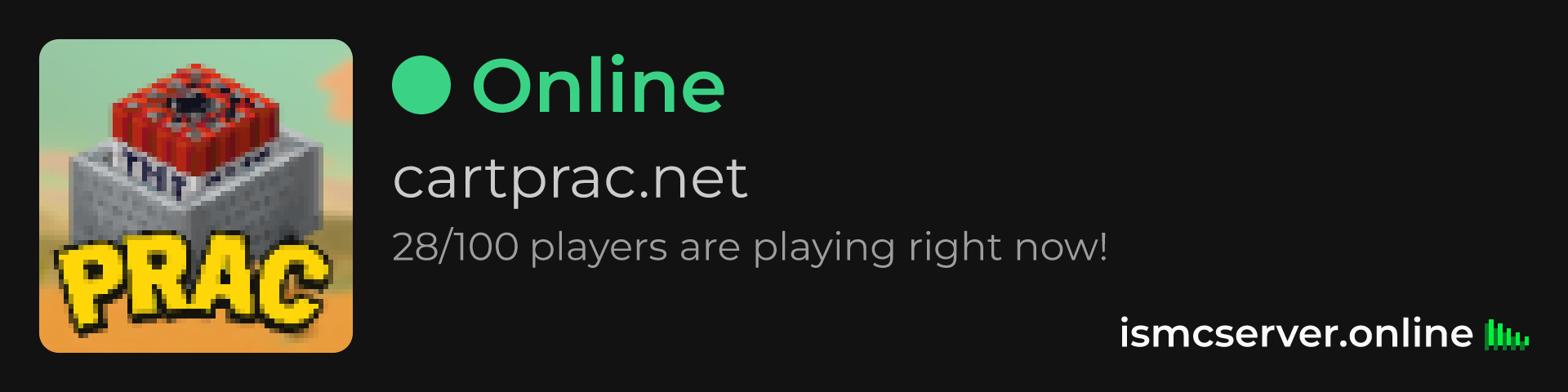 Dark theme: https://ismcserver.online/cartprac.net/widget?dark=true