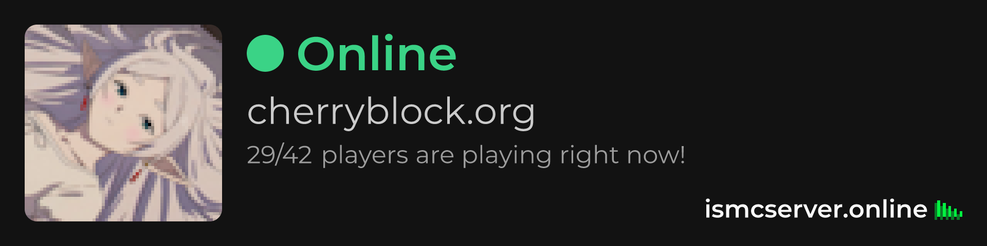 Dark Rounded image: https://ismcserver.online/cherryblock.org/widget?dark&rounded