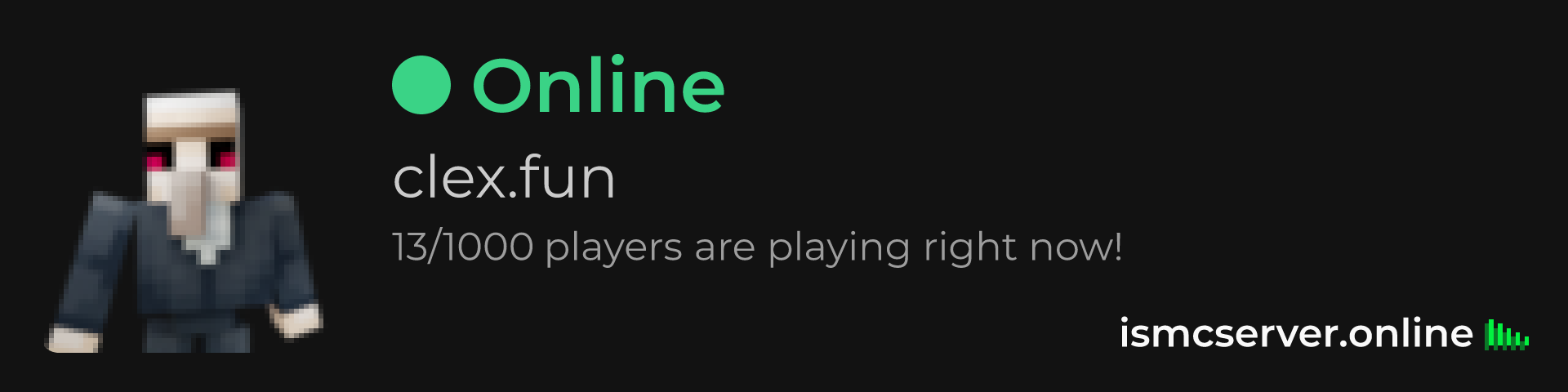 Dark Rounded image: https://ismcserver.online/clex.fun/widget?dark&rounded