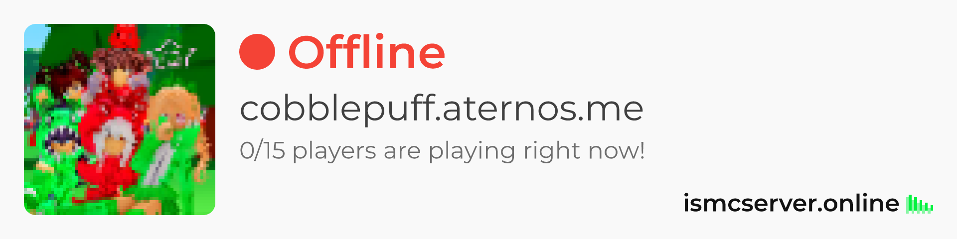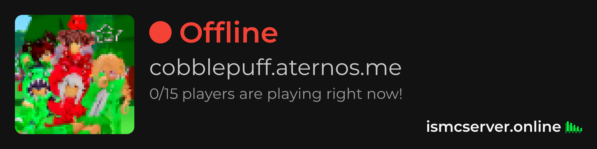 Dark theme: https://ismcserver.online/cobblepuff.aternos.me/widget?dark=true