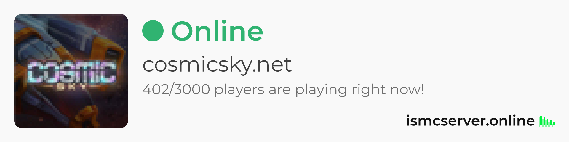 Dark theme: https://ismcserver.online/cosmicsky.net/widget?dark=true