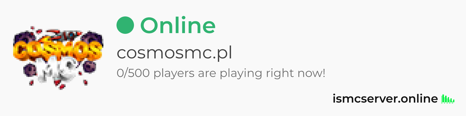 Dark theme: https://ismcserver.online/cosmosmc.pl/widget?dark=true