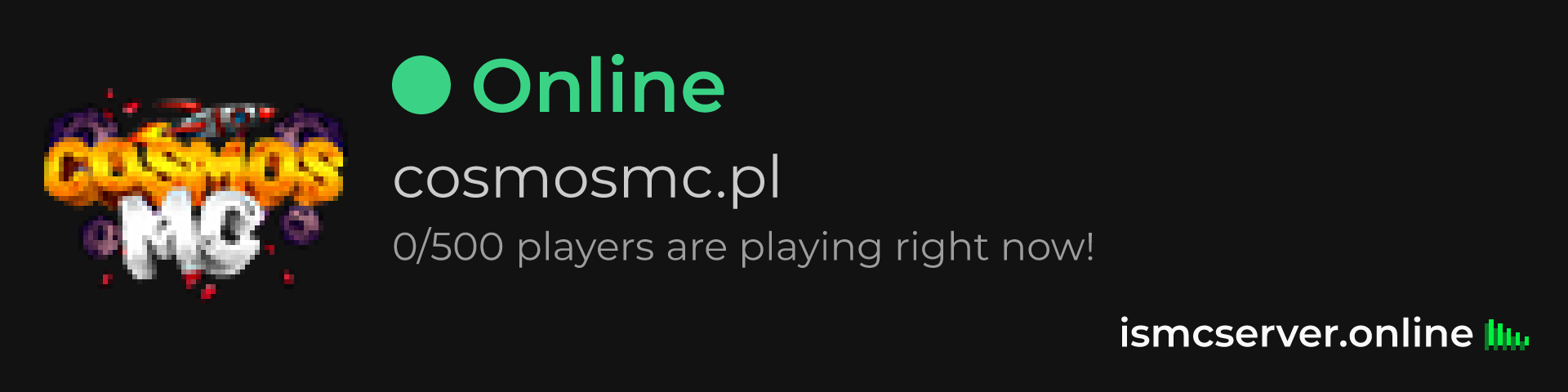 Dark Rounded image: https://ismcserver.online/cosmosmc.pl/widget?dark&rounded