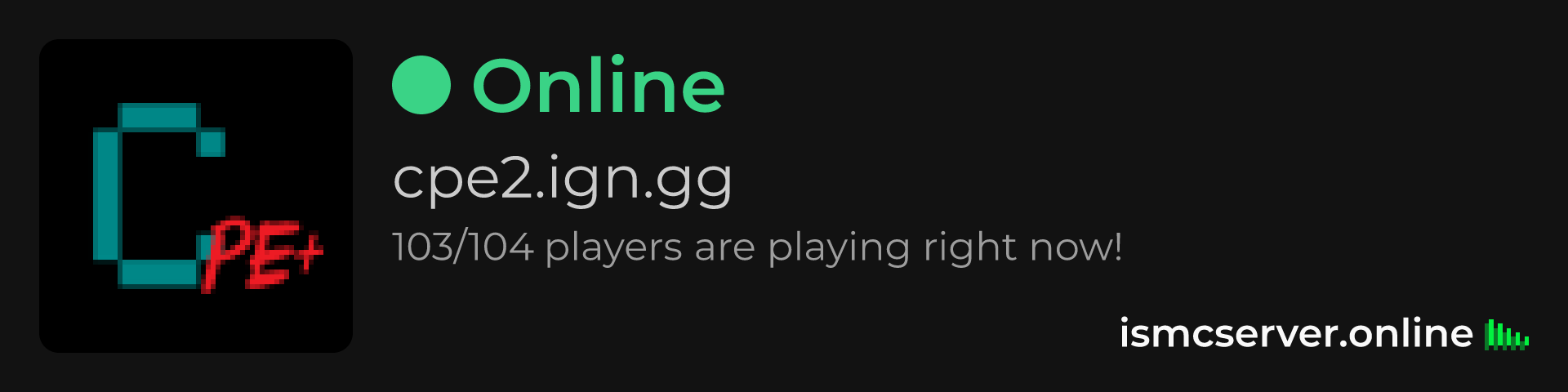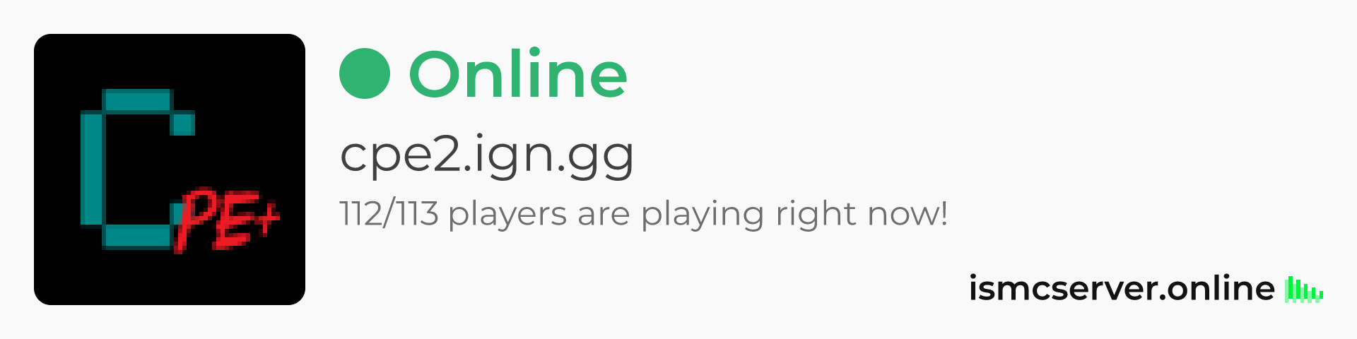 Dark theme: https://ismcserver.online/cpe2.ign.gg/widget?dark=true