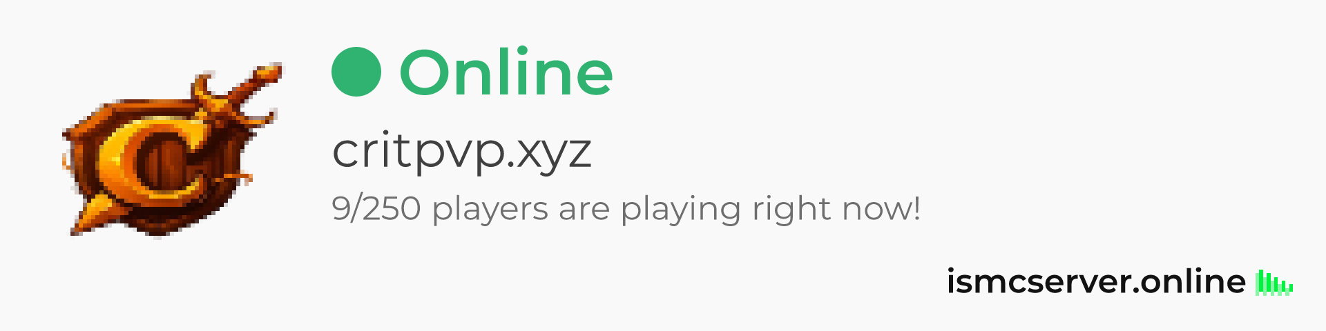 Dark theme: https://ismcserver.online/critpvp.xyz/widget?dark=true