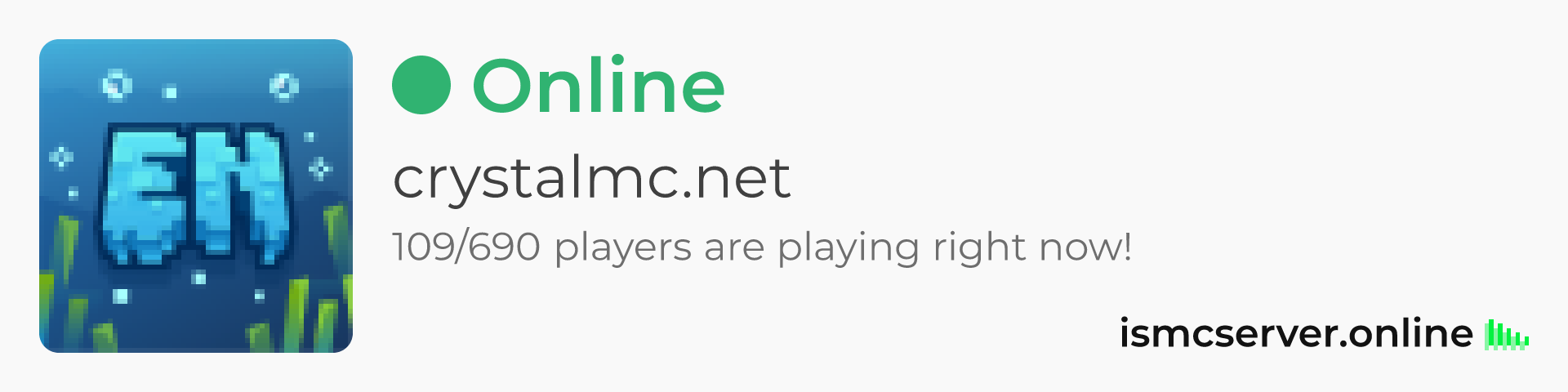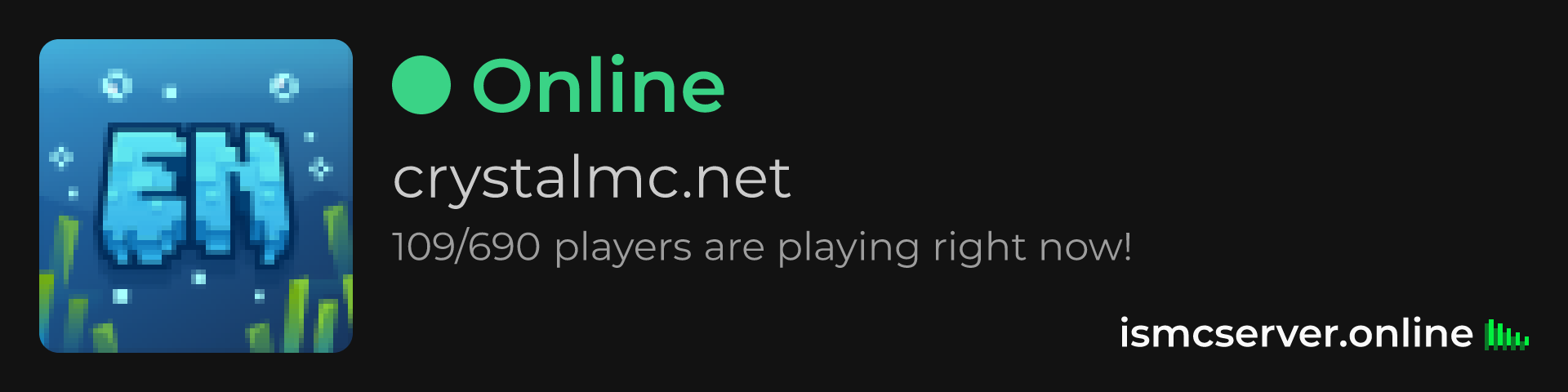 Dark Rounded image: https://ismcserver.online/crystalmc.net/widget?dark&rounded