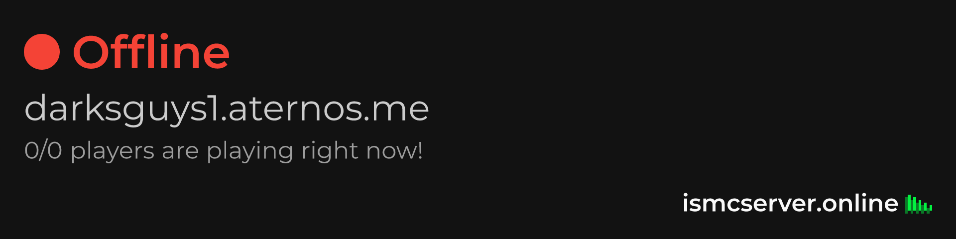 Dark Rounded image: https://ismcserver.online/darksguys1.aternos.me/widget?dark&rounded