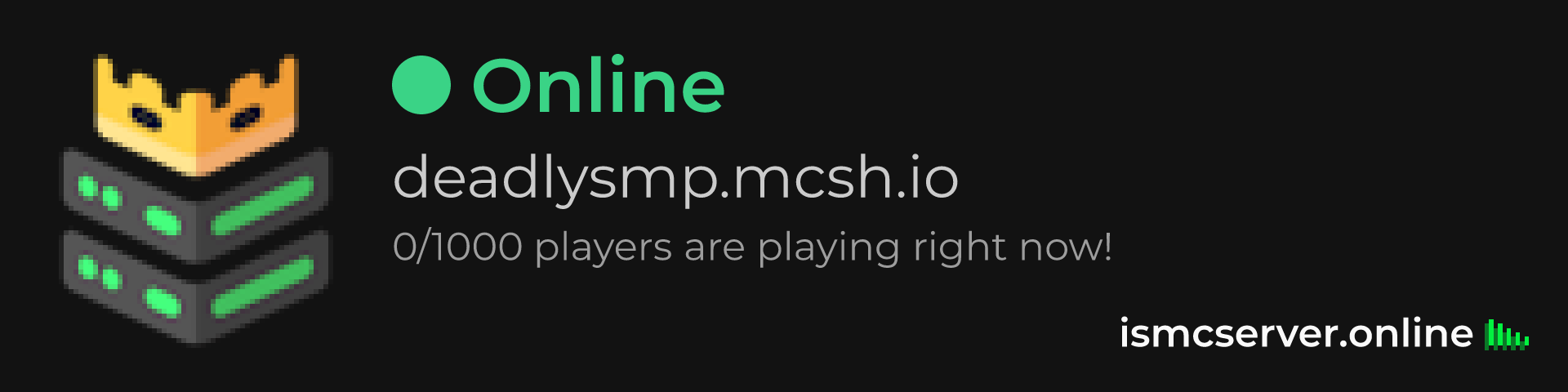 Dark theme: https://ismcserver.online/deadlysmp.mcsh.io/widget?dark=true