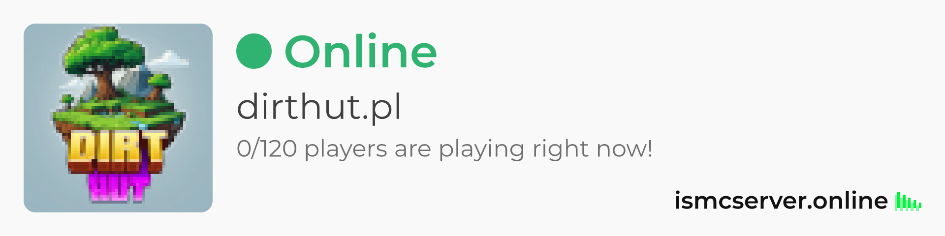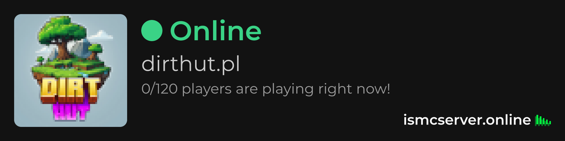 Dark theme: https://ismcserver.online/dirthut.pl/widget?dark=true