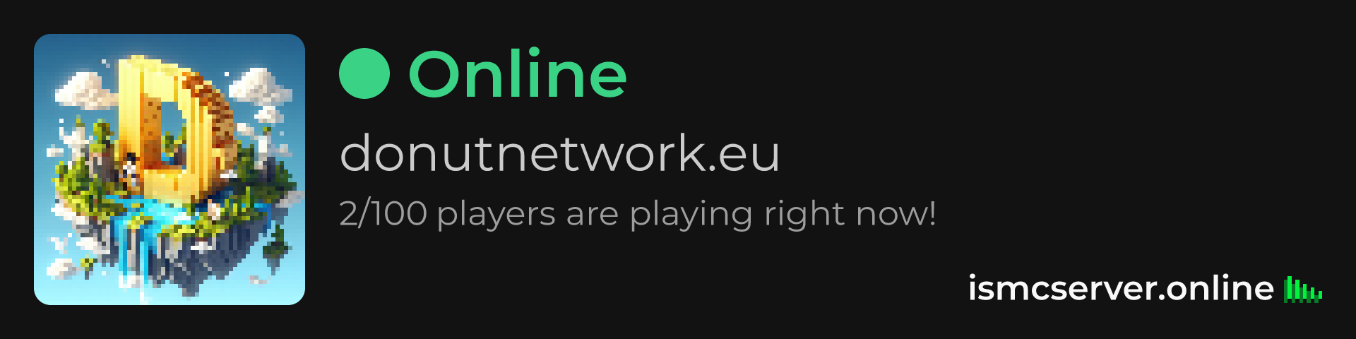 Dark Rounded image: https://ismcserver.online/donutnetwork.eu/widget?dark&rounded