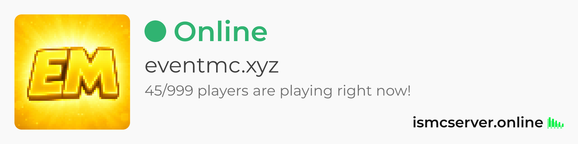 Dark theme: https://ismcserver.online/eventmc.xyz/widget?dark=true