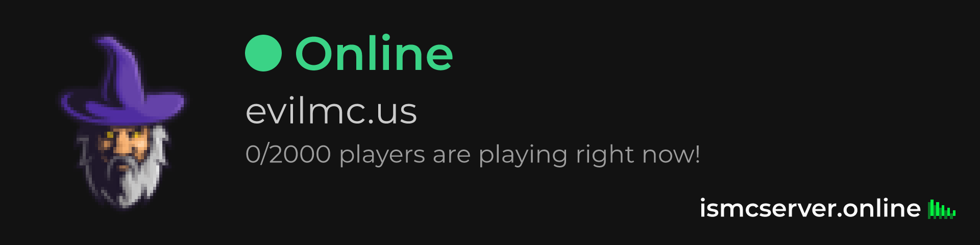 Dark Rounded image: https://ismcserver.online/evilmc.us/widget?dark&rounded