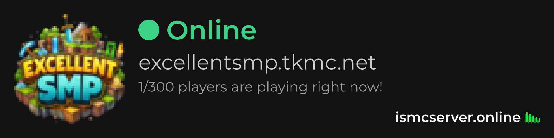 Dark Rounded image: https://ismcserver.online/excellentsmp.tkmc.net/widget?dark&rounded