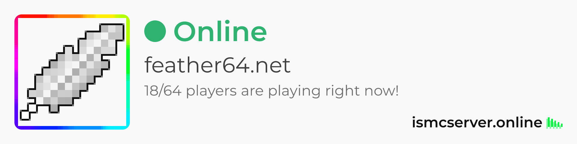 Dark theme: https://ismcserver.online/feather64.net/widget?dark=true