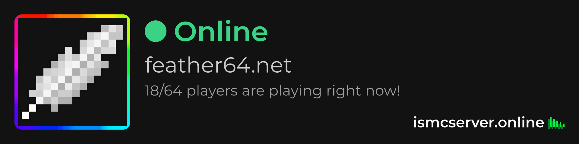 Dark Rounded image: https://ismcserver.online/feather64.net/widget?dark&rounded