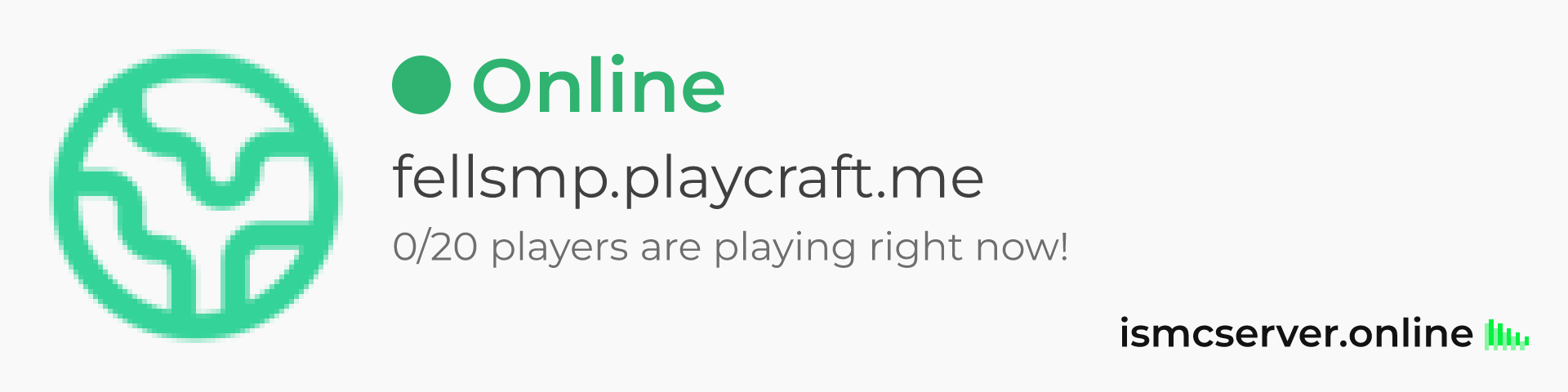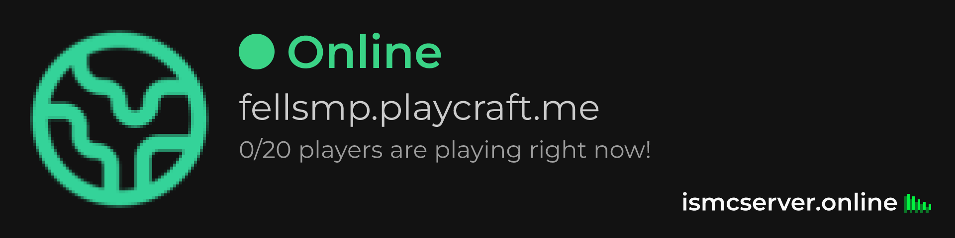 Dark Rounded image: https://ismcserver.online/fellsmp.playcraft.me/widget?dark&rounded
