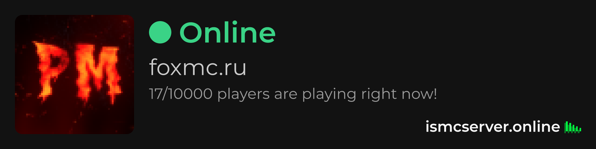 Dark Rounded image: https://ismcserver.online/foxmc.ru/widget?dark&rounded