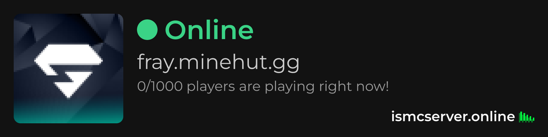 Dark theme: https://ismcserver.online/fray.minehut.gg/widget?dark=true