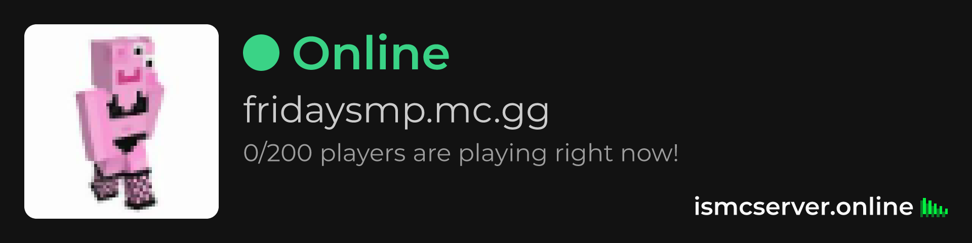 Dark Rounded image: https://ismcserver.online/fridaysmp.mc.gg/widget?dark&rounded