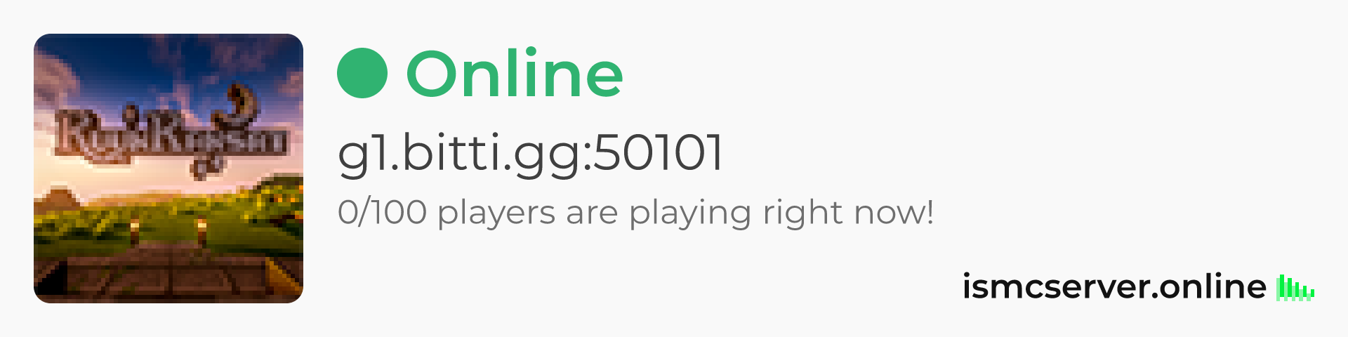 Dark theme: https://ismcserver.online/g1.bitti.gg:50101/widget?dark=true