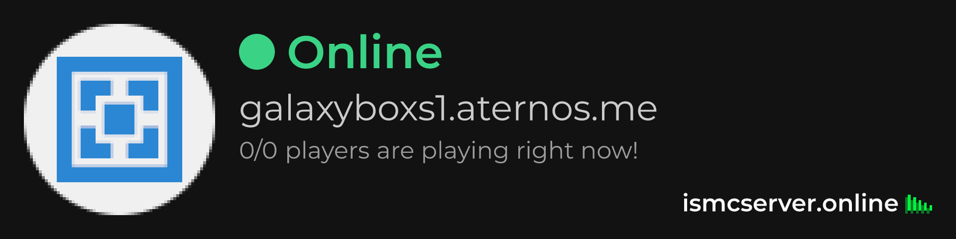 Dark Rounded image: https://ismcserver.online/galaxyboxs1.aternos.me/widget?dark&rounded