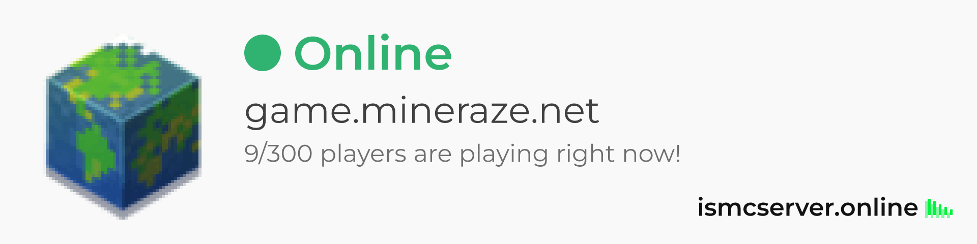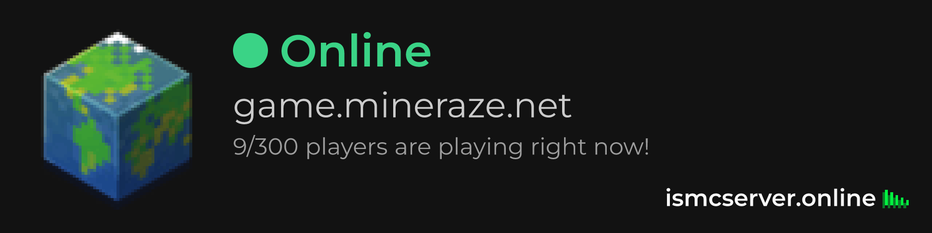 Dark Rounded image: https://ismcserver.online/game.mineraze.net/widget?dark&rounded