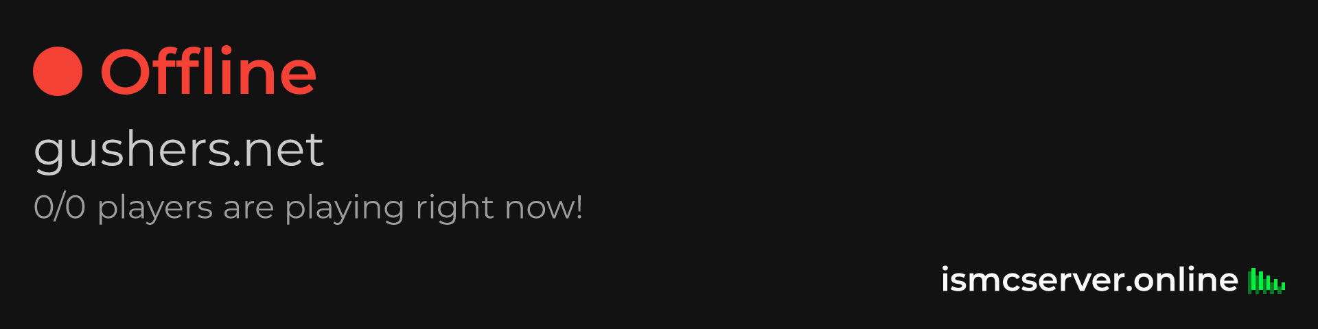 Dark Rounded image: https://ismcserver.online/gushers.net/widget?dark&rounded